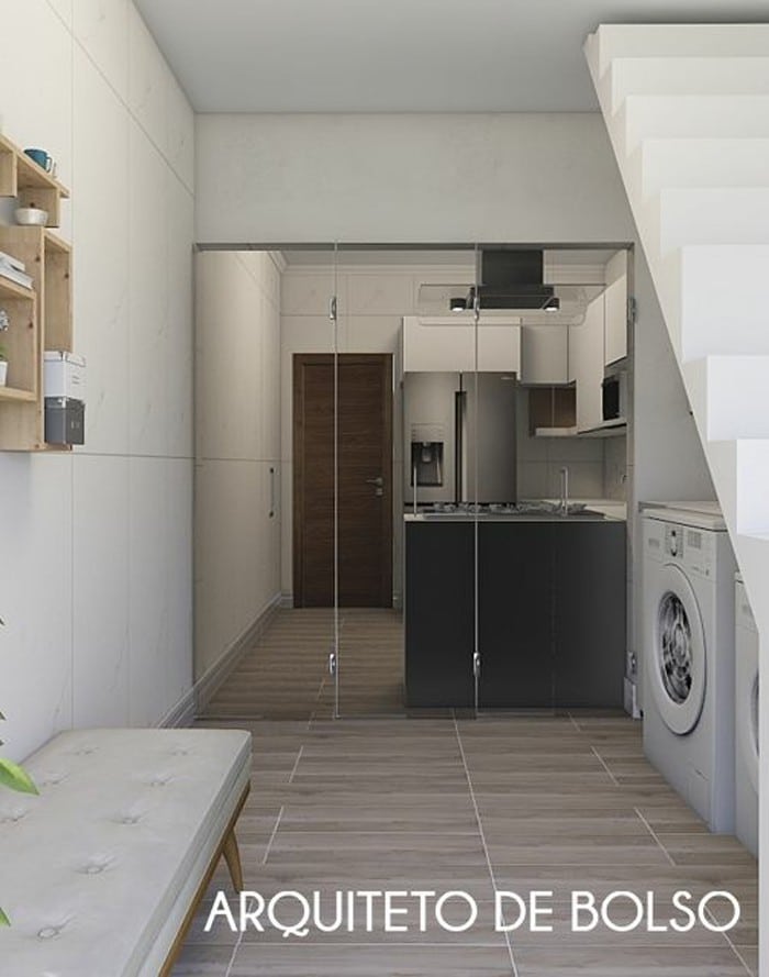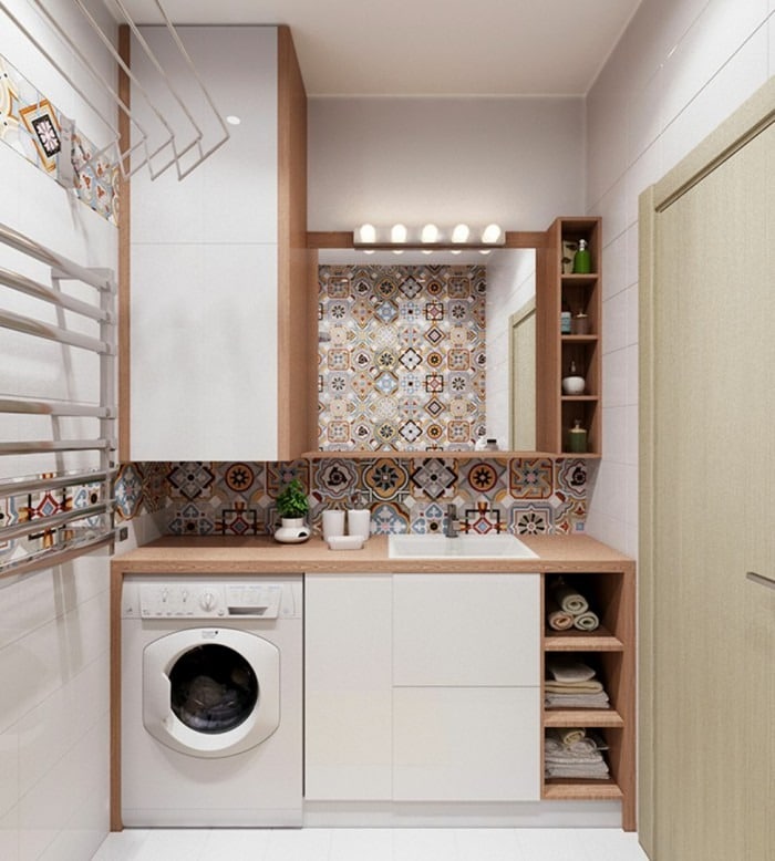 Pensou que era só isso? Não mesmo! Dependendo da sua necessidade, considere incluir no local um varal compacto e aéreo. Essa medida pode ser tomada em casos de pessoas que vivem em kitnets e não dispõem de uma varanda ou outro ambiente para secar as roupas naturalmente.