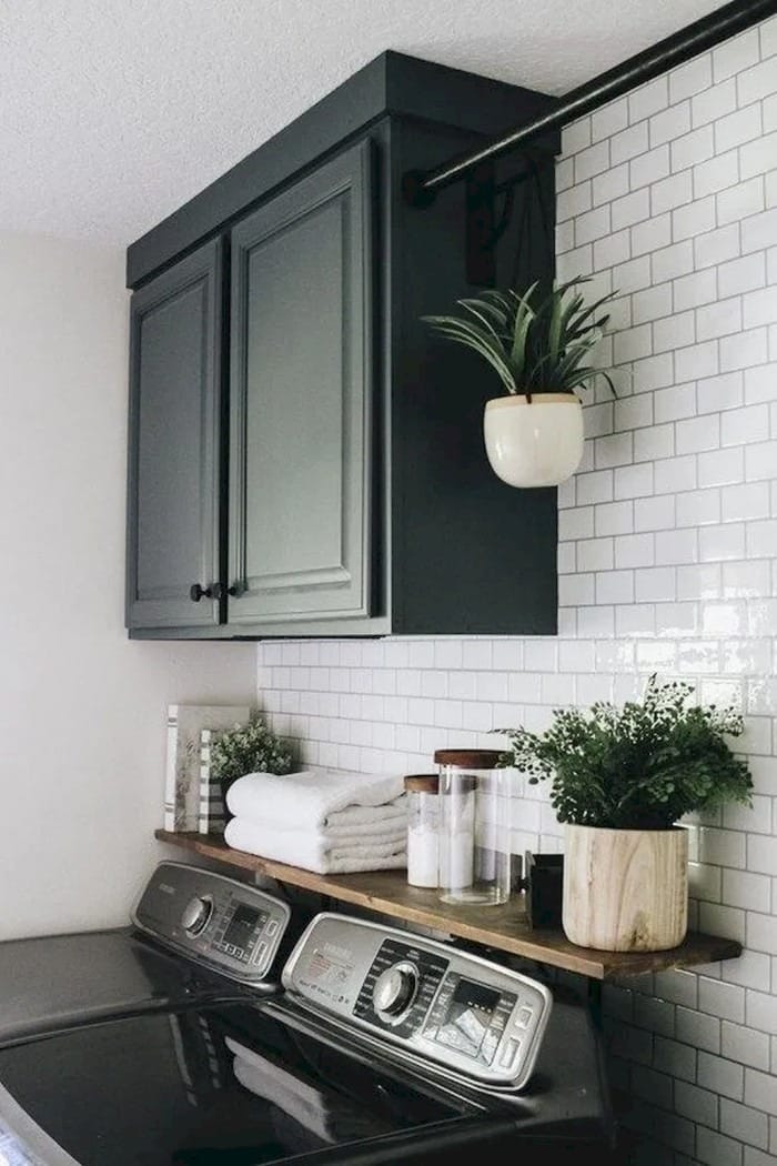 Por isso, invista no uso de nichos e prateleiras que, ao lado do armário, conseguem oferecer espaços extras para que você armazene os seus itens, sem deixá-los espalhados pelo caminho. Fora isso, muitas lavanderias pequenas contam com cestos organizadores, pequenos, leves e acessíveis onde você conseguirá guardar — e separar — os utensílios por categorias.