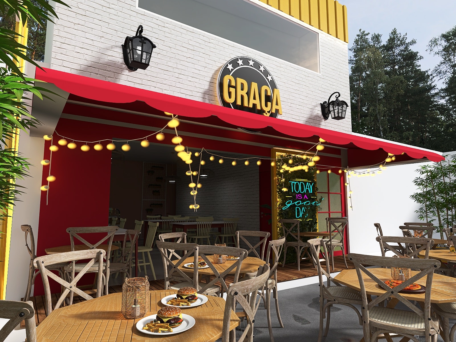 Transformar um ambiente frio e sem personalidade em uma lanchonete moderna, convidativa e que transmitisse a identidade do estabelecimento, além de estudar o melhor layout para mesas e acolher mais clientes.